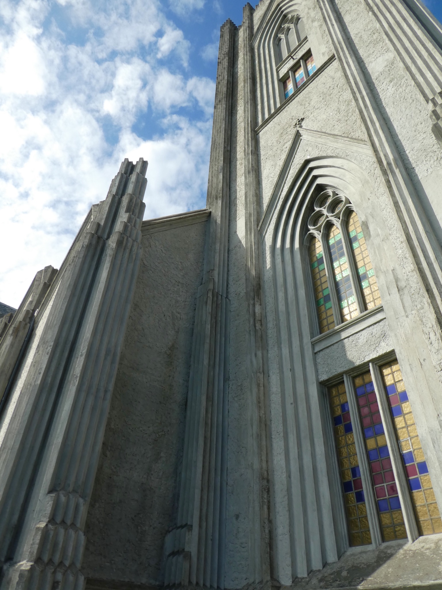 Op het einde van het havengebied ligt Rhufa, een kunstmatige heuvel van gras, 22 m diameter, 8 meter hoog. Een van de visserijreders heeft dit laten aanleggen, een plek om te verademen, met een mooi uitzicht op stad en haven. Op de top staat een klein drooghutje waarin vis hangt te drogen. We rijden de stad in naar de Landakotskirkja, de Rooms-katholieke kathedraal uit 1929.