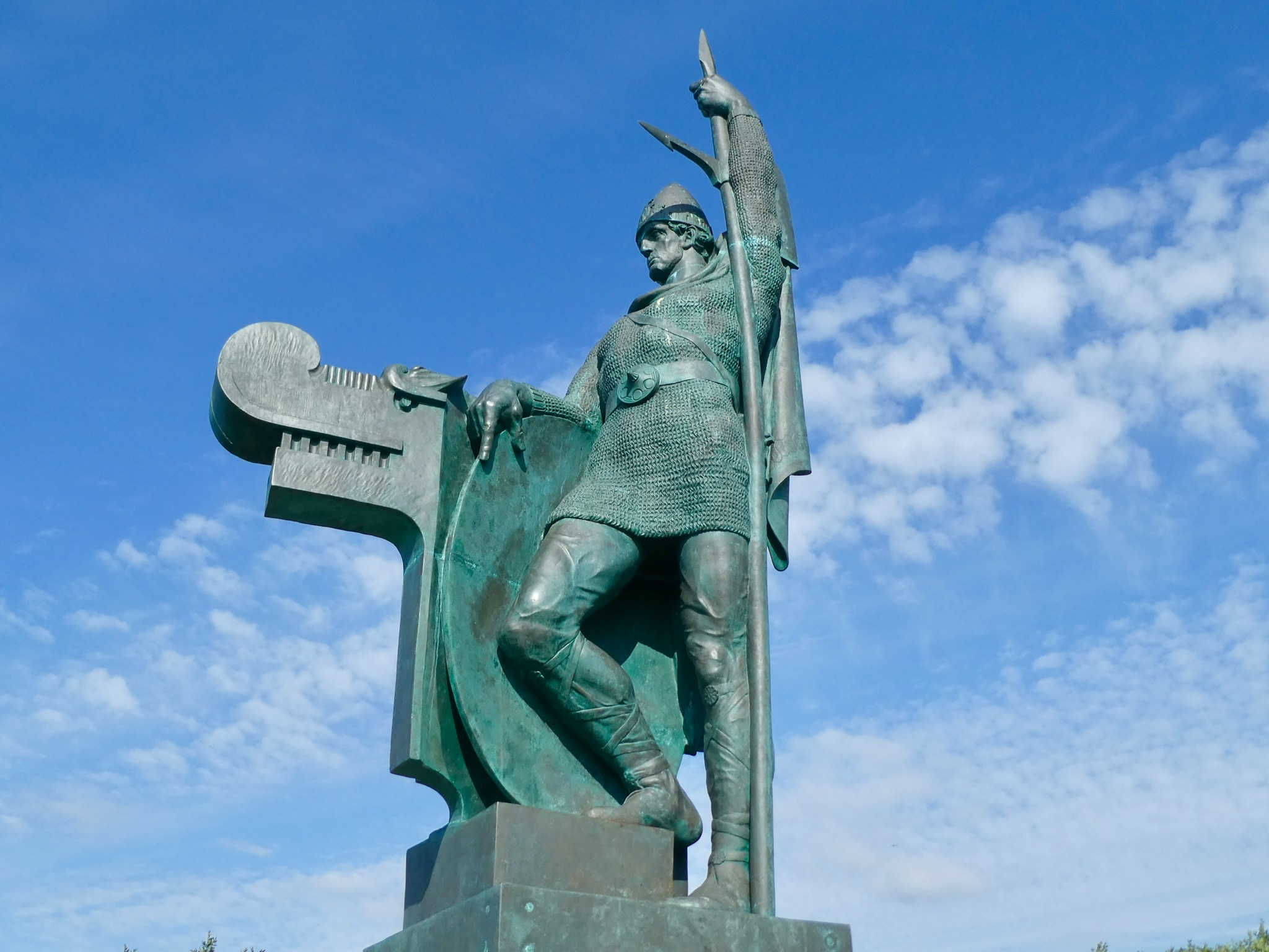 Maar hier aan de baai is een geothermisch warmwaterbad aangelegd. Je kan de faciliteiten gratis gebruiken. De baden hebben een temperatuur van 37 tot 40 graden. De baai zelf is 18-19, niet slecht voor deze noordelijke oceaan. We fietsen de stad in naar het Hljómskálagardúr park met Tjörnin, een fraaie vijver met vele soorten eenden en ganzen. Aan de rand van die vijver ligt het imposante stadhuis Ráðhus Reykjavíkur met een reuze reliëfkaart van IJsland, wat verder dan het parlement, het Althing, sinds 1881 de opvolger van Thingvellir. Tijd om al weer afscheid te nemen van de fietsen en gids. Het was haar laatste tour, morgen vertrekt ze voor een fietstocht van Denemarken, naar huis, naar Hongarije. In het najaar komt ze terug voor een cursus diepzeeduiken. De jeugd van vandaag.Wij trekken naar de terrasjes in de buurt van Adalstraeti, het is intussen heerlijk warm in het zonnetje. In de namiddag hebben we nog een paar dingen op ons programma, de Dómkirkjan, de domkerk uit 1787 van de Evangelisch-Lutherse Kerk van IJsland aan het Austurvöllur meer, een wandelingetje rond dat meer, het oude kerkhof, het beeld van de ‘vogelvrijverklaarde’, de lift naar de top van de toren van de Halgrimmskerk, en de panoramische filmdocumentaire over IJsland in het Harpa.